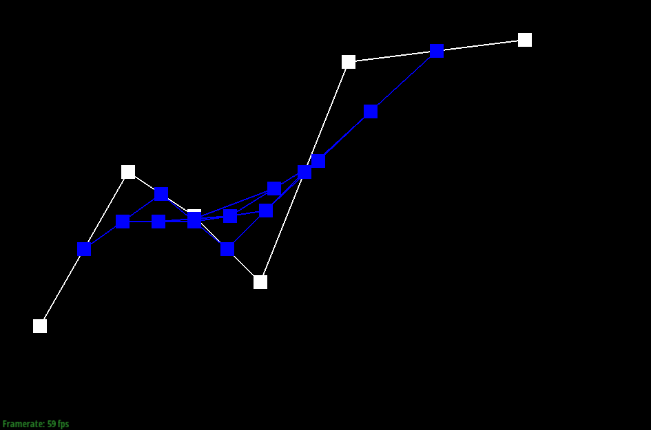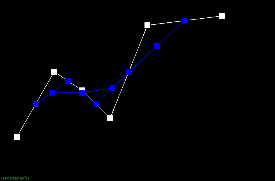 To begin with, we will start out by implementing Bézier curves using de Casteljau’s algorithm. To recap, de Casteljau’s algorithm works by using linear interpolation between our control points to find a new set of control points, and it recursively does this until a single point is obtained: this point is our evaluated point on the Bézier curve.