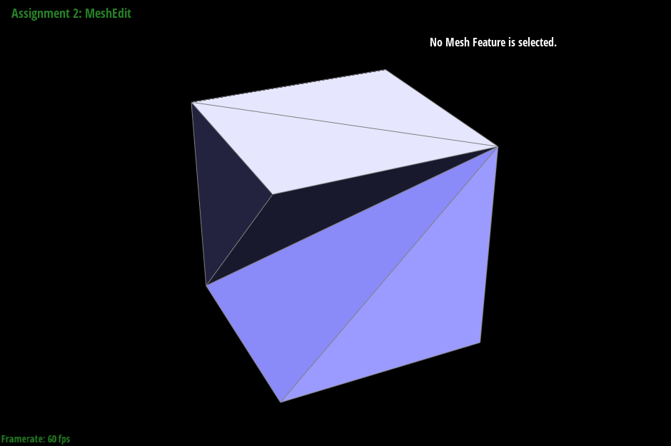 Our algorithm is somewhat similar to that of the previous part in terms of having to keep track of all of the different halfedges, vertices, edges, etc. However, since in here, we are splitting an edge up, we will have to introduce new halfedges, faces, etc. to accomodate this change using newHalfedge() and other appropriate functions. And from here, we have to update using setNeighbors() accordingly.